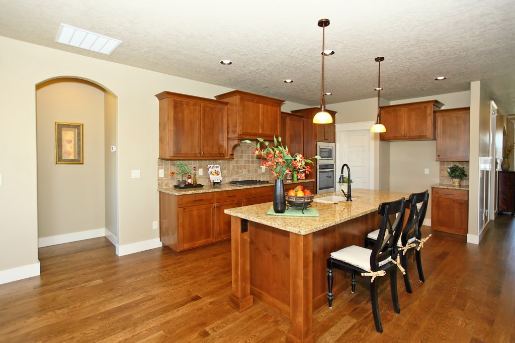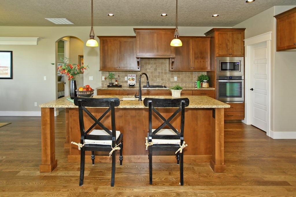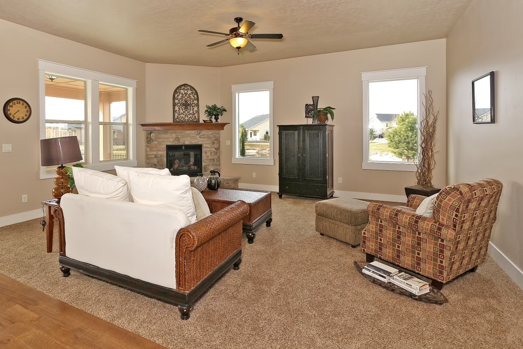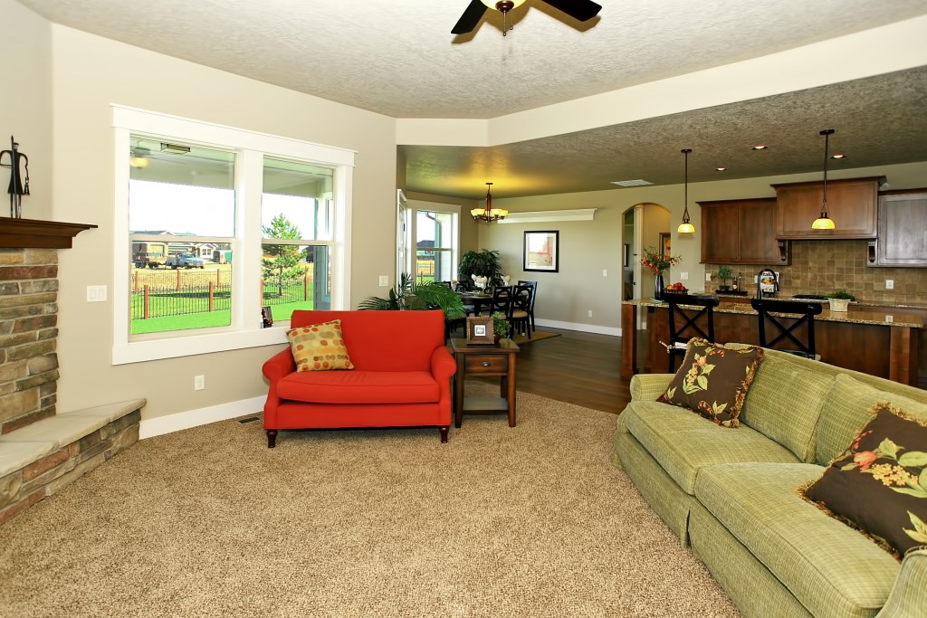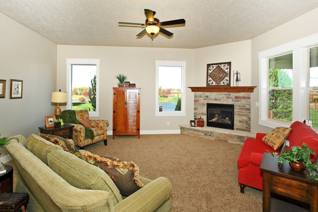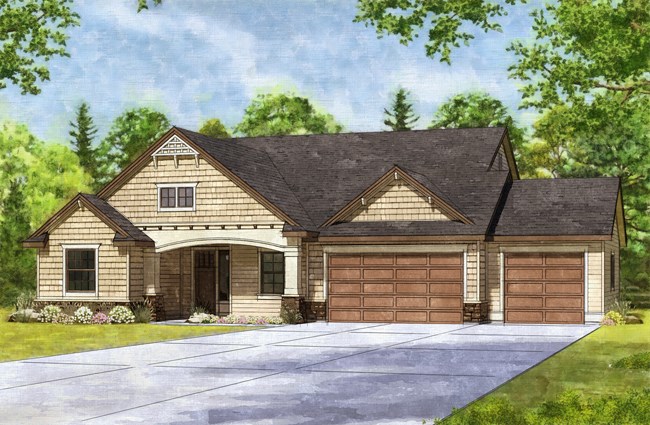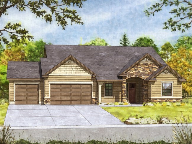 The McCall Model by Stanford Homes is our most populare single level plan. This, 3 bedroom, 2 bath, 2256 Sq. Ft plan has great curb appeal with it's beautifully though out elevation. It's split bedroom design includes large den/office, oversized 3 car garage, with a great room concept for that spacious feel. The master suite has huge walk-in closet, dual vanities in bath, walk-in shower & soaker tub. Kitchen includes custom built cabinets, granite countertops, SS appliances, pantry & hardwood floors with access to large covered patio. Download Printable Floor Plan