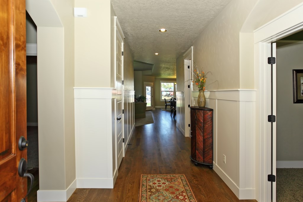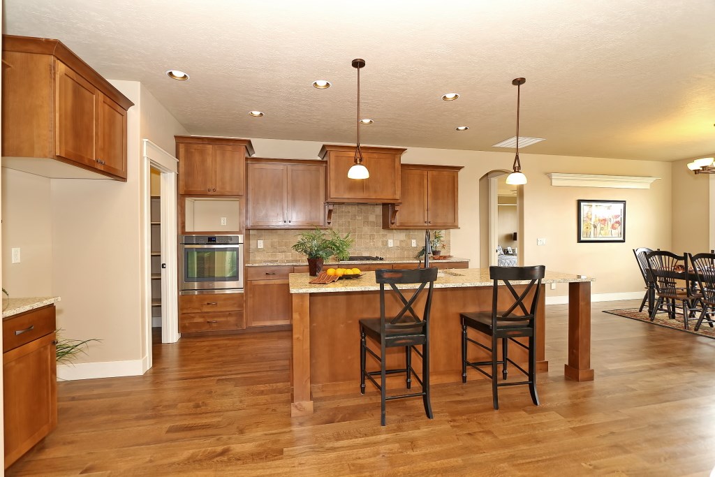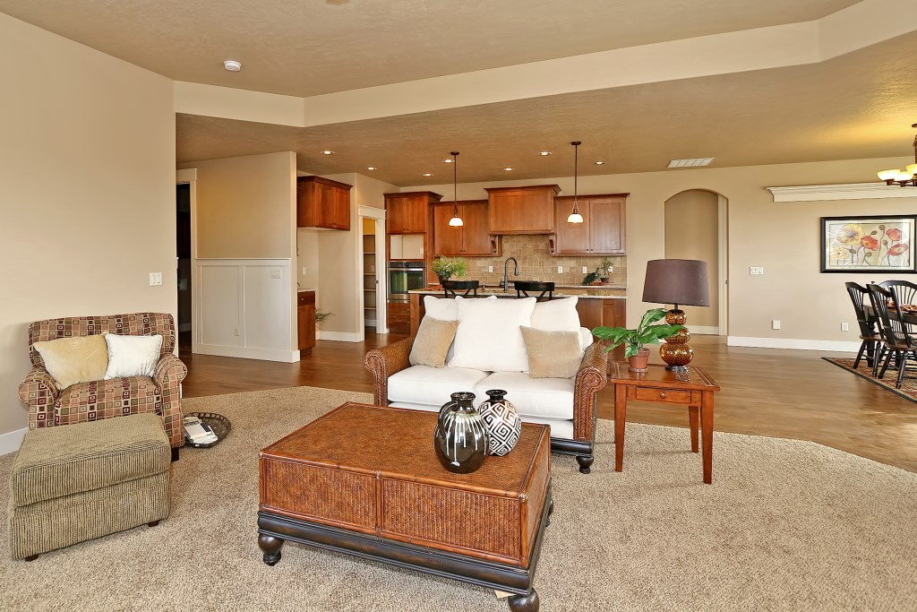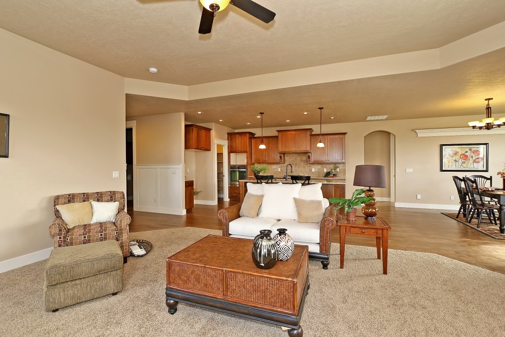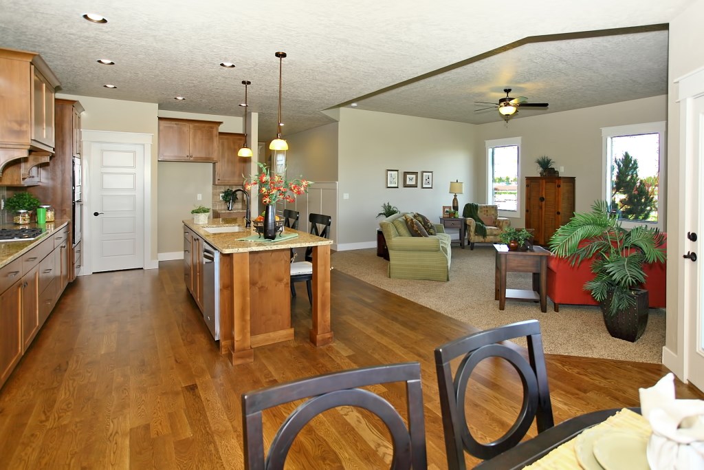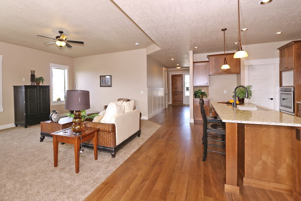 The McCall Model by Stanford Homes is our most populare single level plan. This, 3 bedroom, 2 bath, 2256 Sq. Ft plan has great curb appeal with it's beautifully though out elevation. It's split bedroom design includes large den/office, oversized 3 car garage, with a great room concept for that spacious feel. The master suite has huge walk-in closet, dual vanities in bath, walk-in shower & soaker tub. Kitchen includes custom built cabinets, granite countertops, SS appliances, pantry & hardwood floors with access to large covered patio. Download Printable Floor Plan