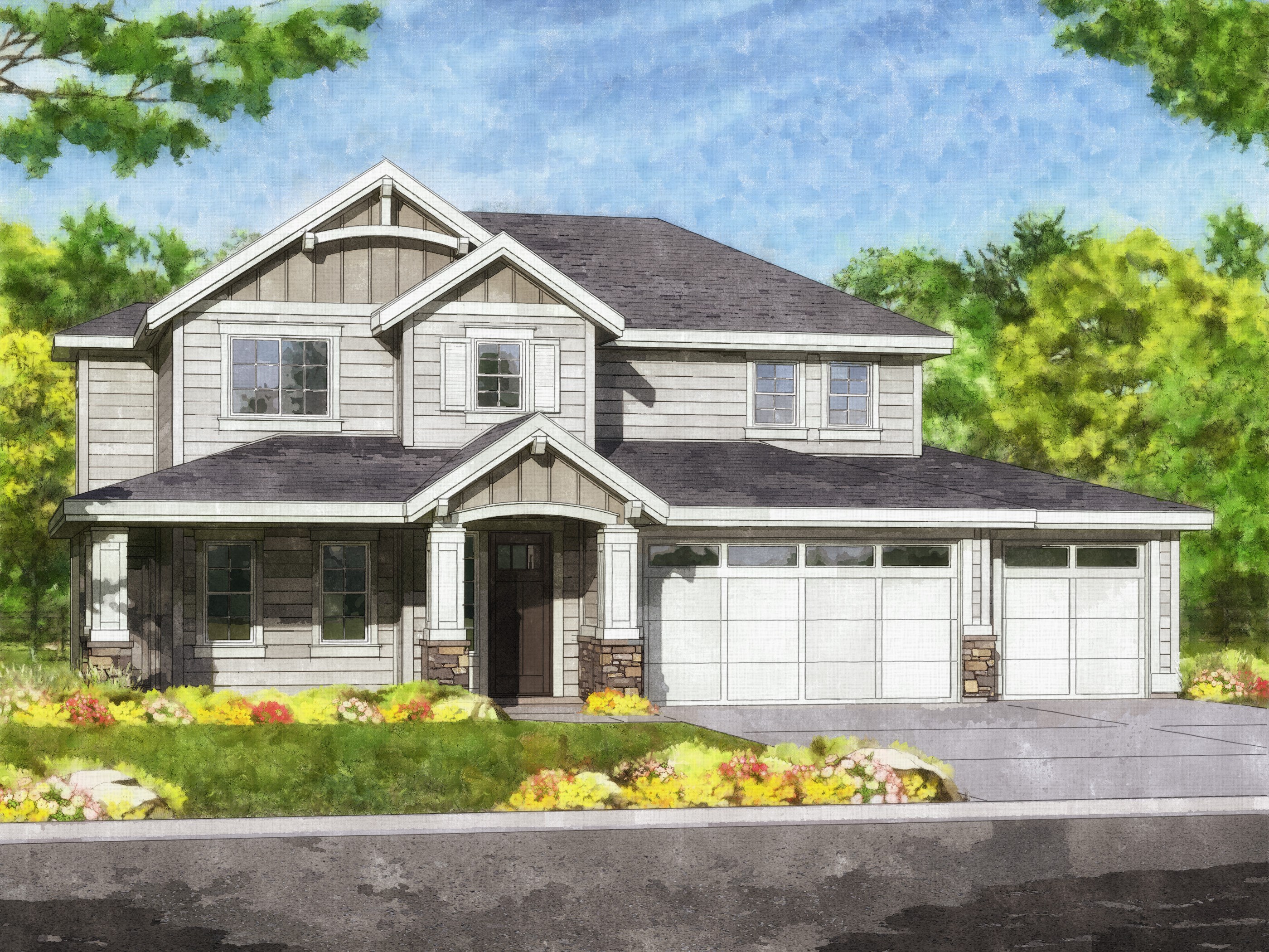 The Payette C by Stanford Homes is a thoughtfully designed, 2,207 Sq. Ft. open floor plan with 10 ft. ceilings, abundant windows, large great room with striking gas fireplace and relaxing owner’s suite with dual vanities, soaker tub, shower, and walk-in closet. The kitchen offers a gas range, stainless steel appliances, island, custom cabinets, granite counter tops & large pantry. This home is truly a rare find. Showcased with a wrap around front porch, covered patio & oversized 3 car garage. CERTIFIED ENERGY STAR CONSTRUCTION! Download Printable Floor Plan